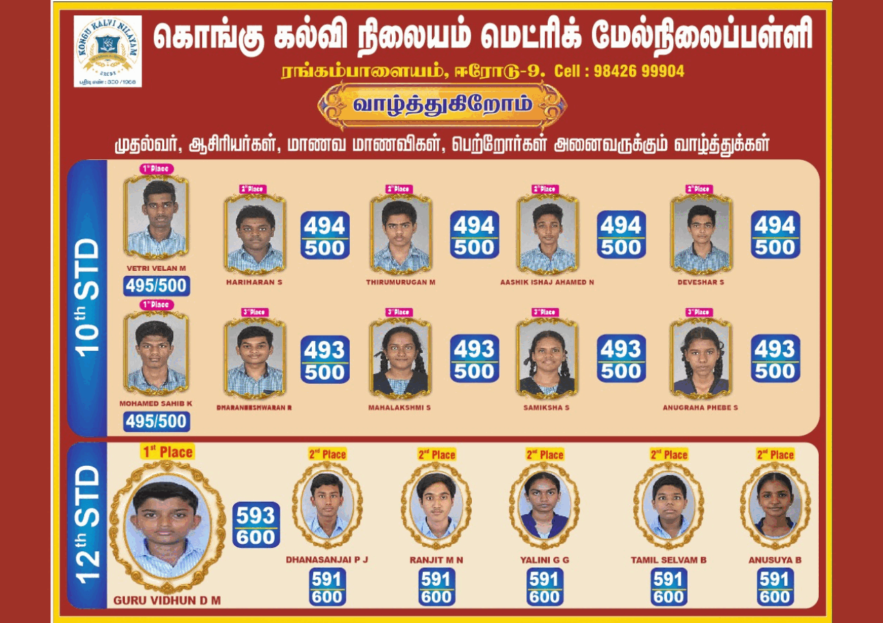 Kongu Kalvi Nilayam Matric Higher Secondary School, established in the academic year 1987–88, stands as a beacon of educational excellence in Rangampalayam, Chennimalai Road, Erode.