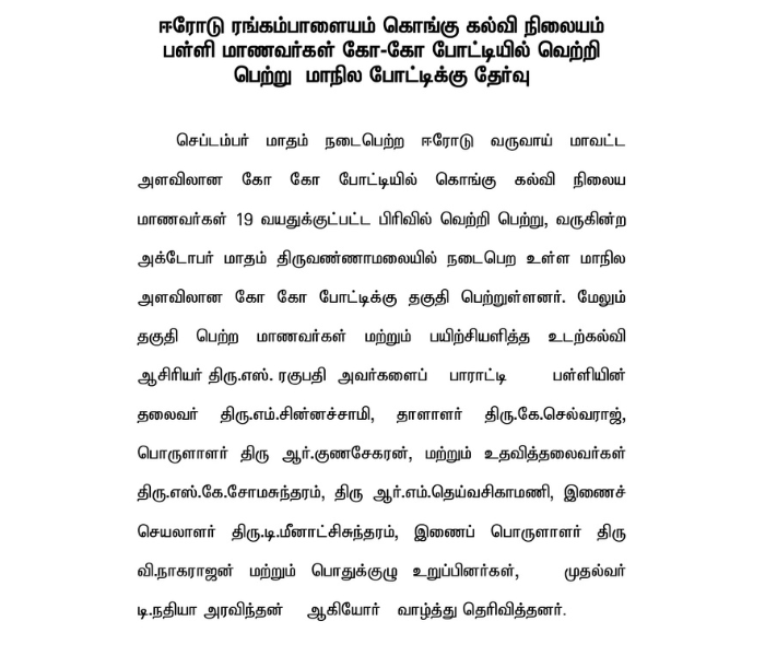 Kho-Kho State Level Achievers