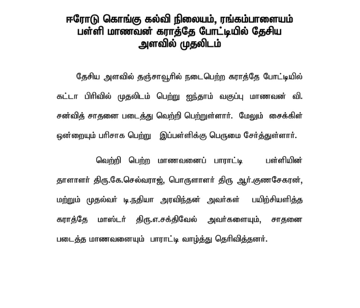 Karate Sports National Level - Tanjore